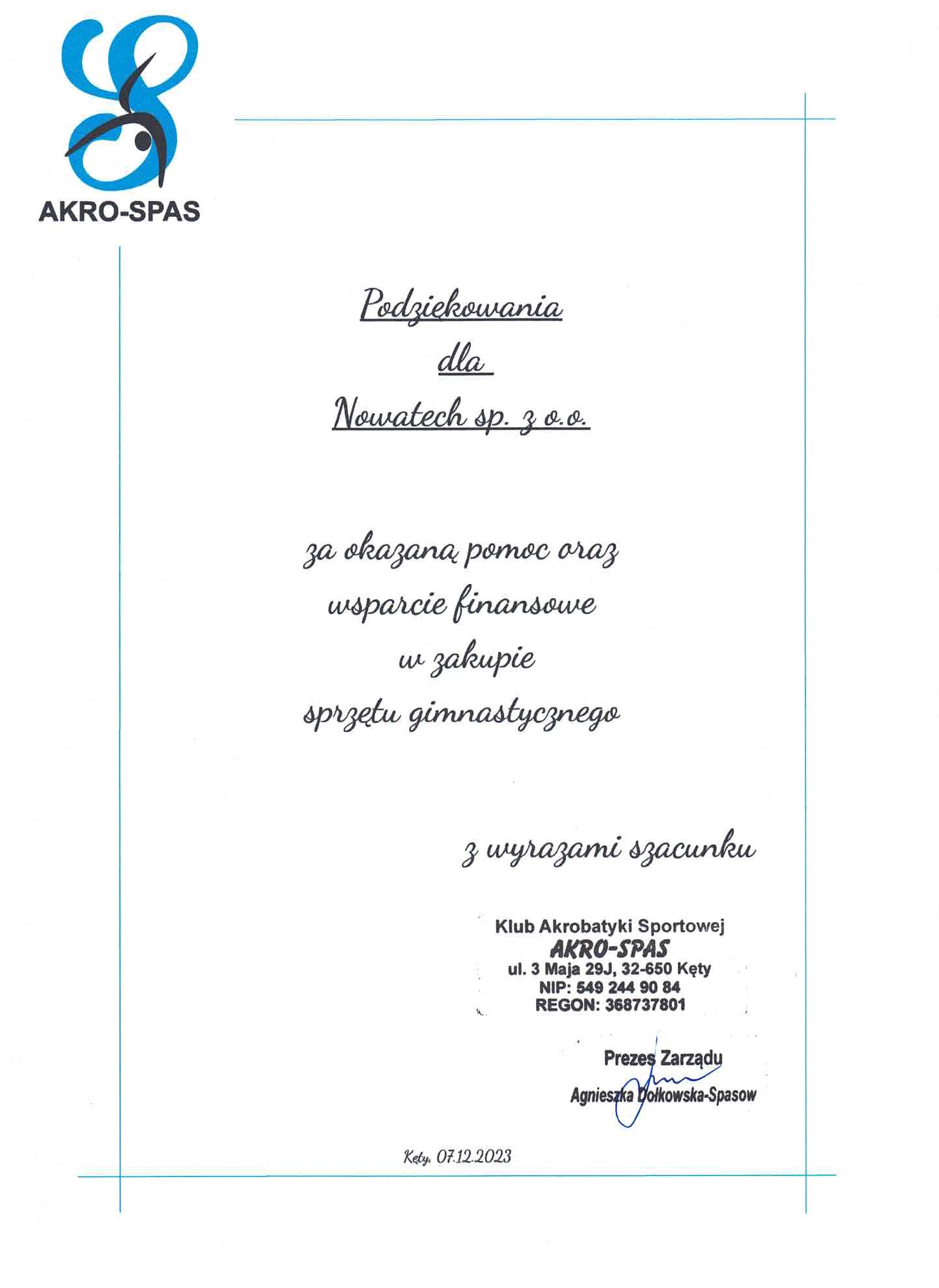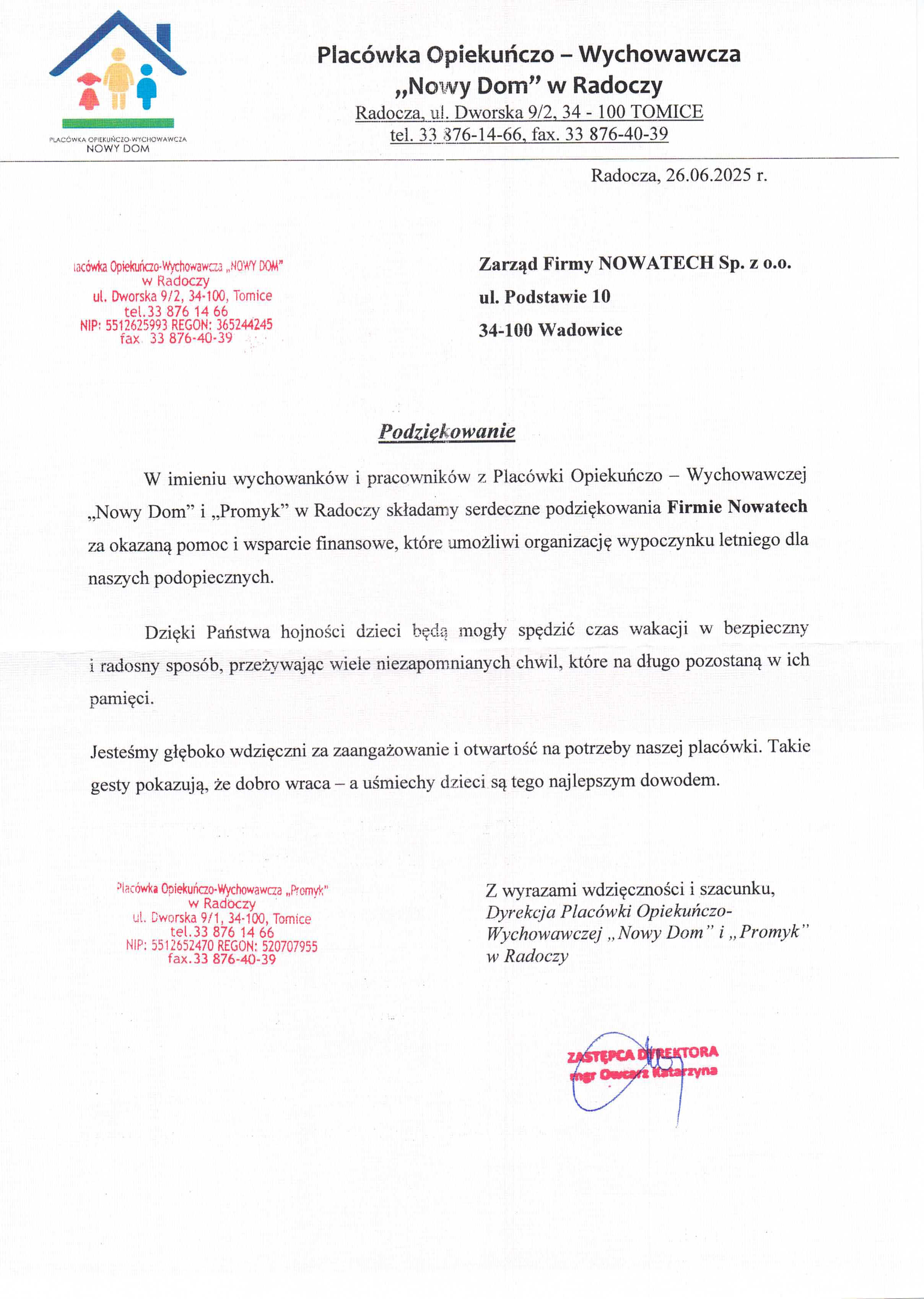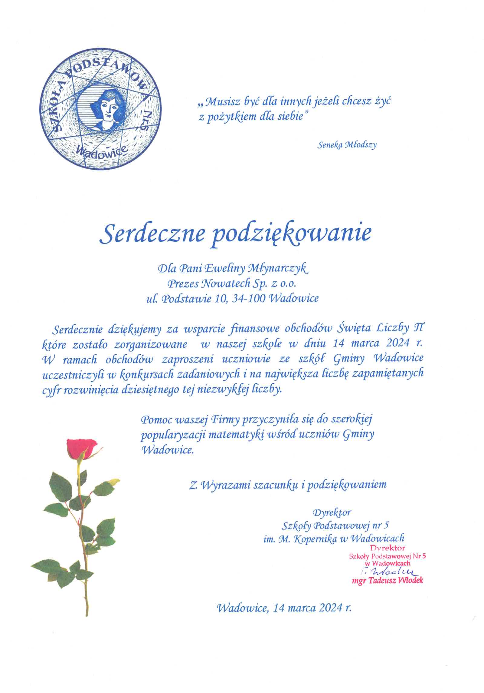 Z radością informujemy, że firma NOWATECH otrzymała podziękowania za udzielenie wsparcia X Maratonowi Pływackiemu, zorganizowanemu z okazji jubileuszu 159-lecia I LO im. Marcina Wadowity w Wadowicach. To dla nas zaszczyt móc wspierać wydarzenia, które łączą pasję, rywalizację i tradycję — a przede wszystkim promują aktywność fizyczną wśród młodzieży i mieszkańców naszego regionu. Gratulujemy organizatorom i uczestnikom fantastycznej atmosfery oraz sportowych wyników! Razem tworzymy społeczność, która inspiruje do działania.