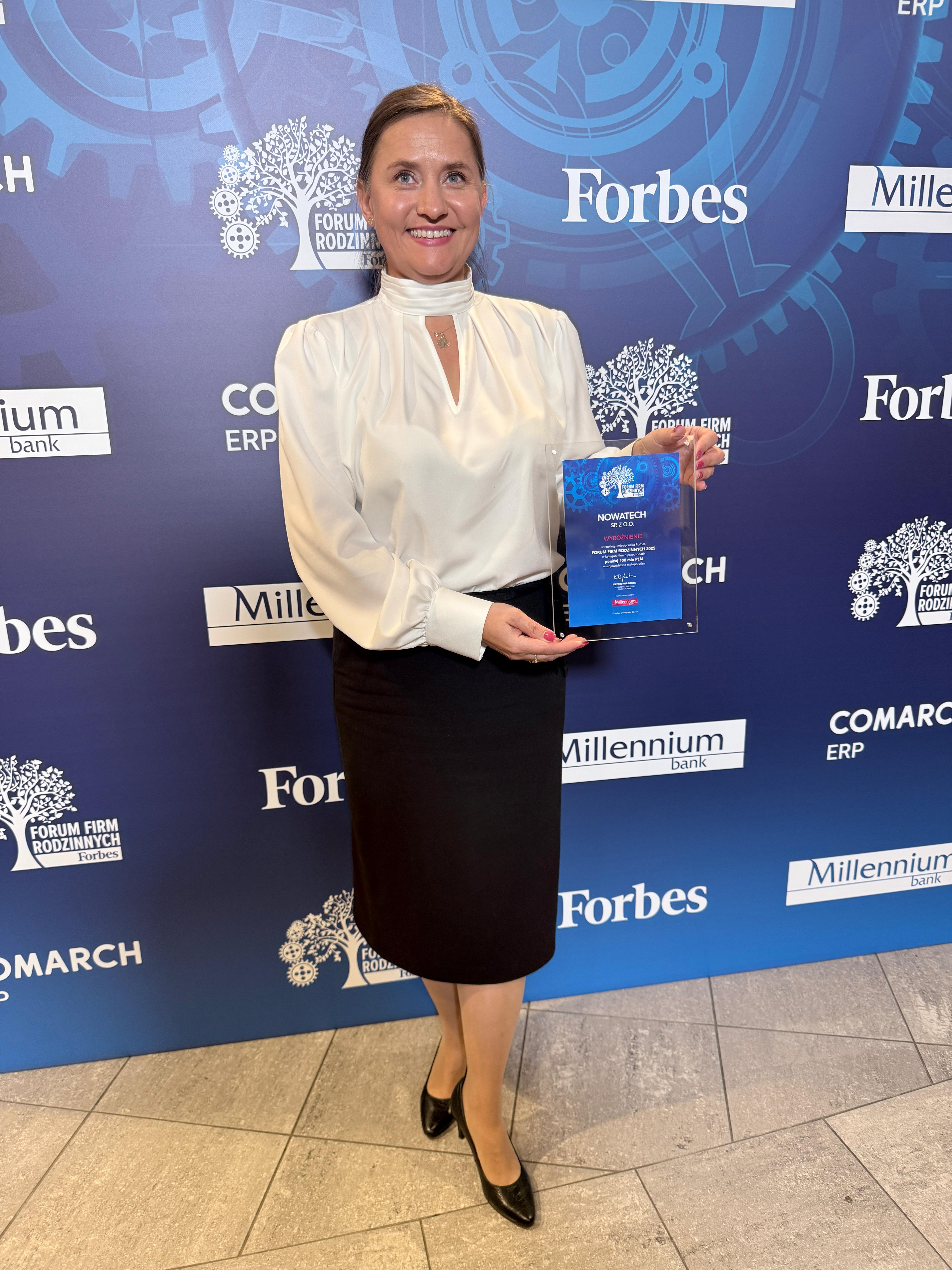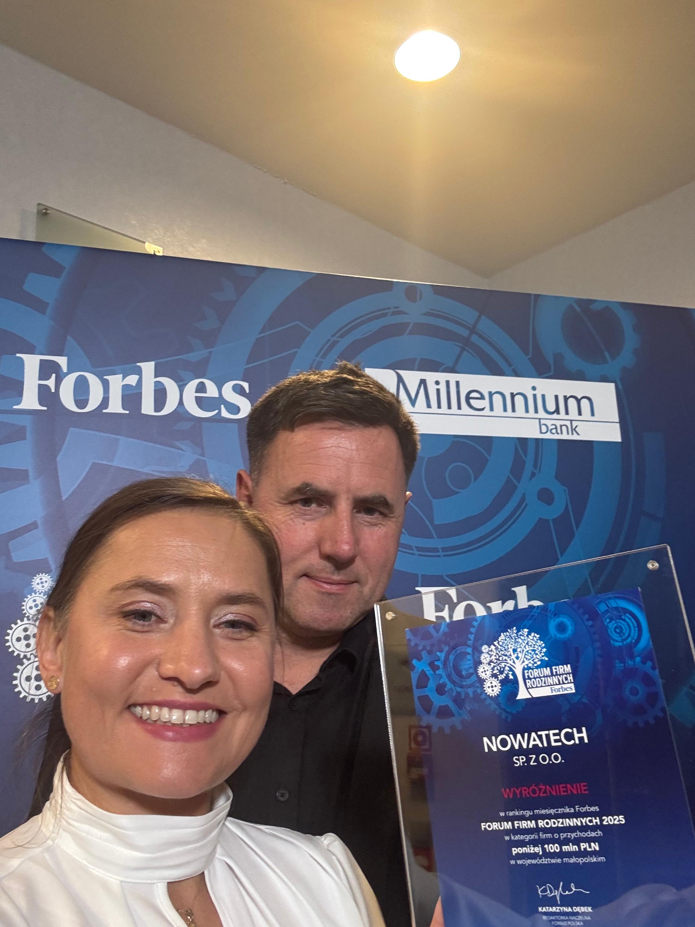 Nowatech w gronie wyróżnionych w VIII edycji rankingu Forbes Forum Firm Rodzinnych 2025 Zostaliśmy wyróżnieni w rankingu miesięcznika Forbes – Forum Firm Rodzinnych 2025 w kategorii firm o przychodach poniżej 100 mln PLN w województwie małopolskim! To dla nas szczególne wyróżnienie, ponieważ Nowatech to firma rodzinna – zbudowana na wartościach zaufania, zaangażowania i współpracy międzypokoleniowej. Każdy sukces to efekt wspólnej pracy naszej firmowej rodziny, w której pasja i odpowiedzialność przekazywane są z pokolenia na pokolenie. Dziękujemy naszym pracownikom, partnerom i klientom – jesteście częścią tej historii! Razem udowadniamy, że siła rodziny to siła biznesu.