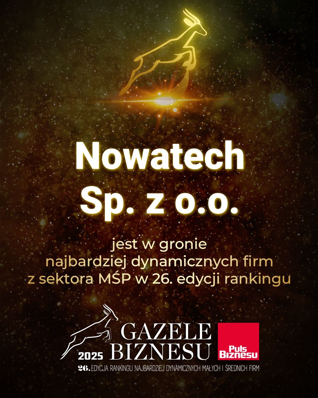 Z dumą informujemy, że Nowatech znalazł się w gronie najbardziej dynamicznych firm z sektora Małych i Średnich Przedsiębiorstw w 26. edycji rankingu 2025 To prestiżowe wyróżnienie jest potwierdzeniem naszego konsekwentnego rozwoju, innowacyjnego podejścia i zaangażowania całego zespołu. Dziękujemy naszym pracownikom, partnerom i klientom za zaufanie – to dzięki Wam możemy nieustannie się rozwijać i wyznaczać nowe kierunki. To dla nas nie tylko powód do dumy, ale także motywacja do dalszych ambitnych działań!