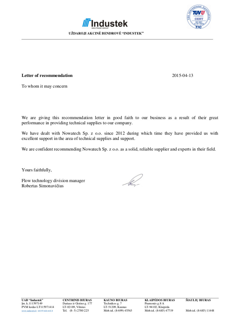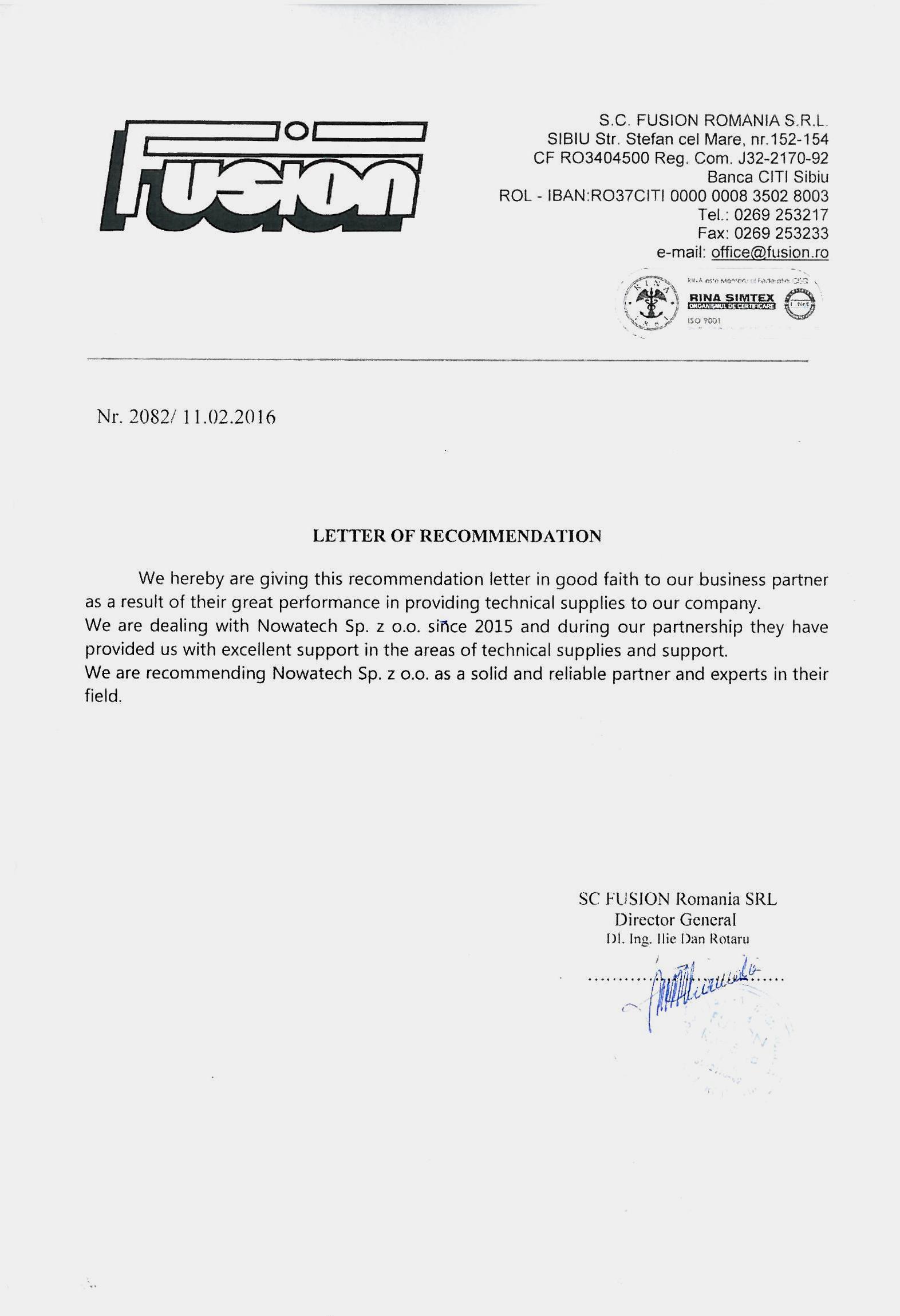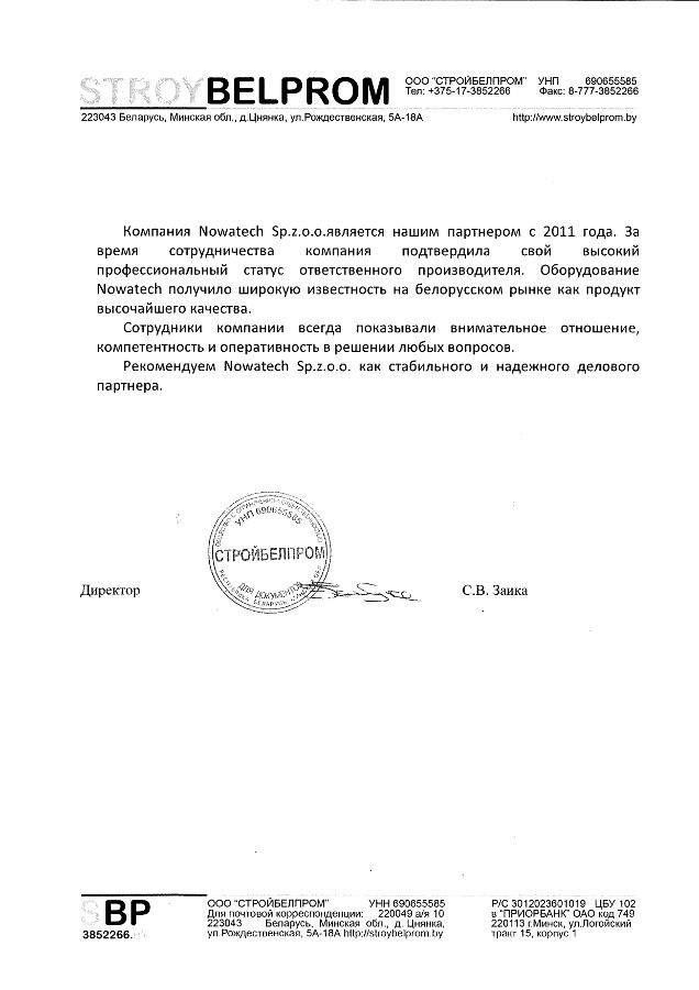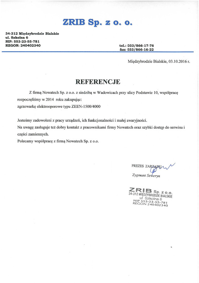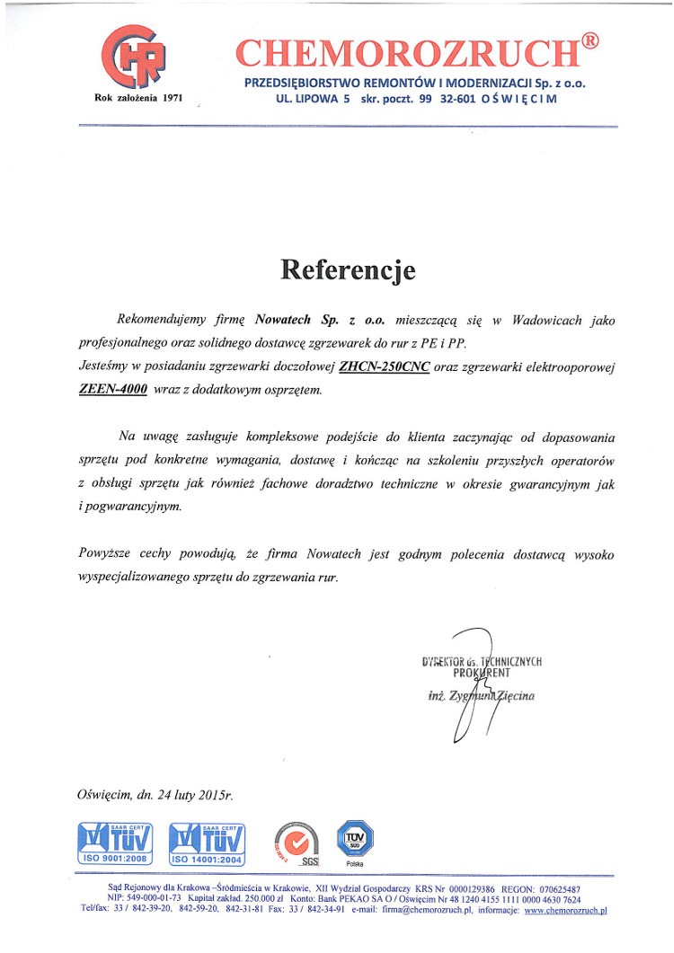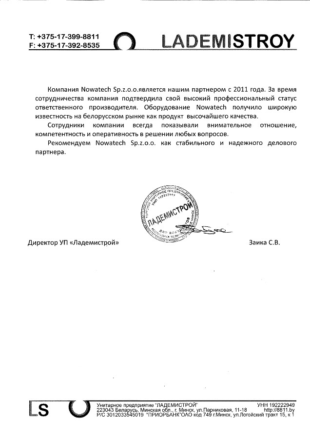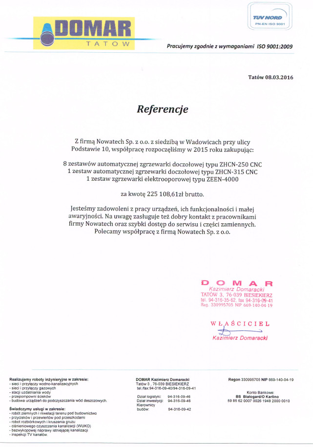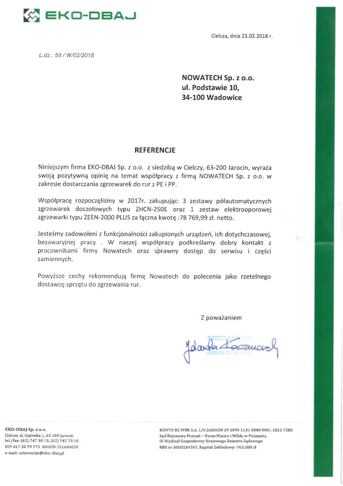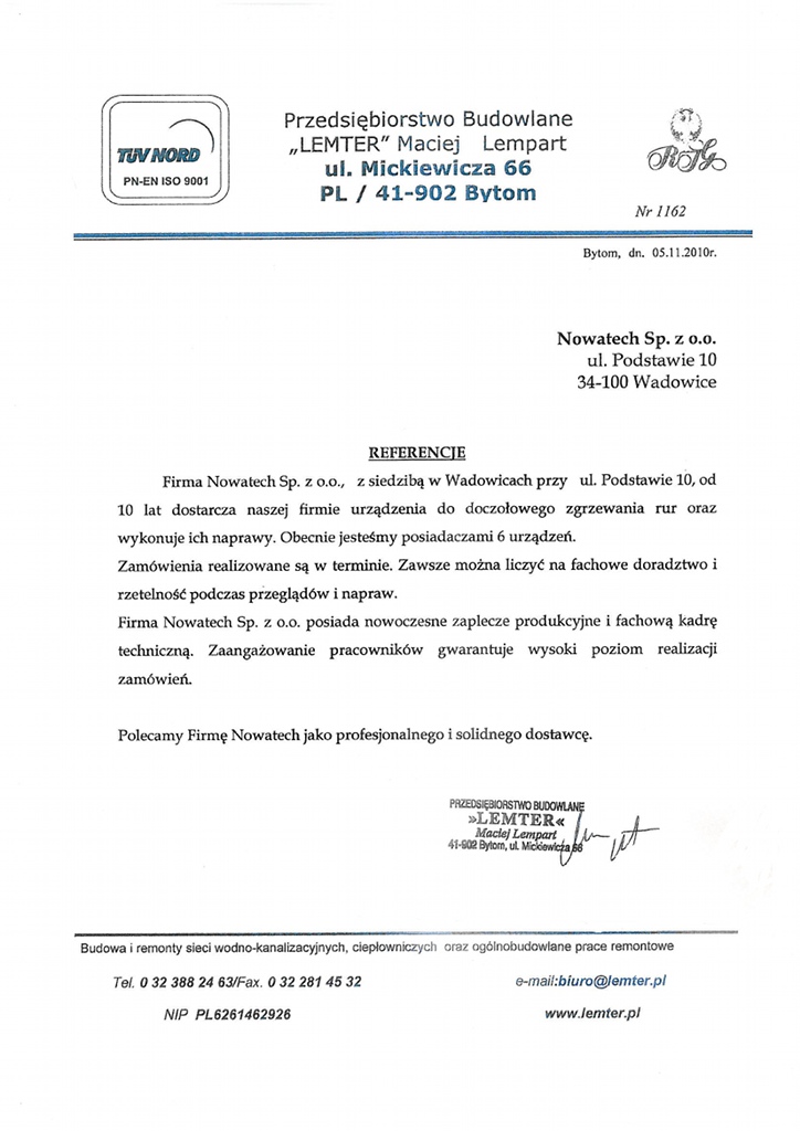 The confirmation of Nowatech's professionalism are the letters of References sent by our clients. The high quality of materials used to manufacture welders and professional customer service is a guarantee satisfaction from cooperation with our company. Thank you for purchasing Nowatech welding machines and for the trust you have placed in us.