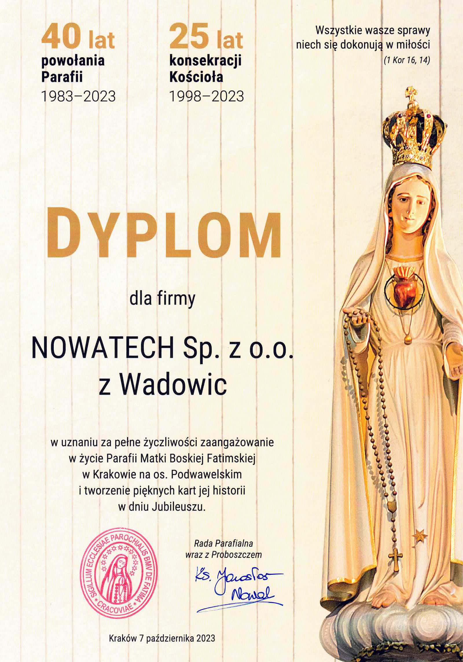 Z dumą informujemy, że Prezes Zarządu Nowatech, Ewelina Młynarczyk, została uhonorowana Diamentowym Certyfikatem Rzetelności Płatniczej podczas jubileuszowej 15. Gali Rzetelna Firma, która odbyła się 9 października 2025 roku w hotelu DoubleTree by Hilton w Warszawie. To prestiżowe wyróżnienie przyznawane jest firmom, które przez wiele lat prowadzą działalność w sposób uczciwy, przejrzysty i odpowiedzialny, potwierdzając najwyższe standardy w zakresie wiarygodności płatniczej i etyki biznesowej. Udział Prezes Eweliny Młynarczyk w tym wydarzeniu to nie tylko osobisty sukces, ale także dowód uznania dla całej firmy Nowatech. Diamentowy Certyfikat to efekt wieloletniej, konsekwentnej pracy całego zespołu oraz partnerskich relacji z Klientami i Kontrahentami. Rzetelność i zaufanie od zawsze są fundamentem naszej działalności. Nowatech to rodzinna firma ceniąca sobie nade wszystko wartości takie jak zaufanie, uczciwość, przejrzystość w prowadzeniu biznesu i otwartość na rzetelną współpracę. Firma Nowatech od lat stawia na odpowiedzialne prowadzenie biznesu, budując trwałe relacje oparte na transparentności i uczciwości. Diamentowy Certyfikat Rzetelności Płatniczej jest kolejnym potwierdzeniem wysokich standardów, którymi kieruje się w codziennej działalności. Serdeczne podziękowania kierujemy do naszych Klientów, Partnerów Biznesowych oraz całego Zespołu Nowatech – to dzięki wspólnemu zaangażowaniu możemy nieustannie się rozwijać i realizować nasze cele w duchu rzetelności.