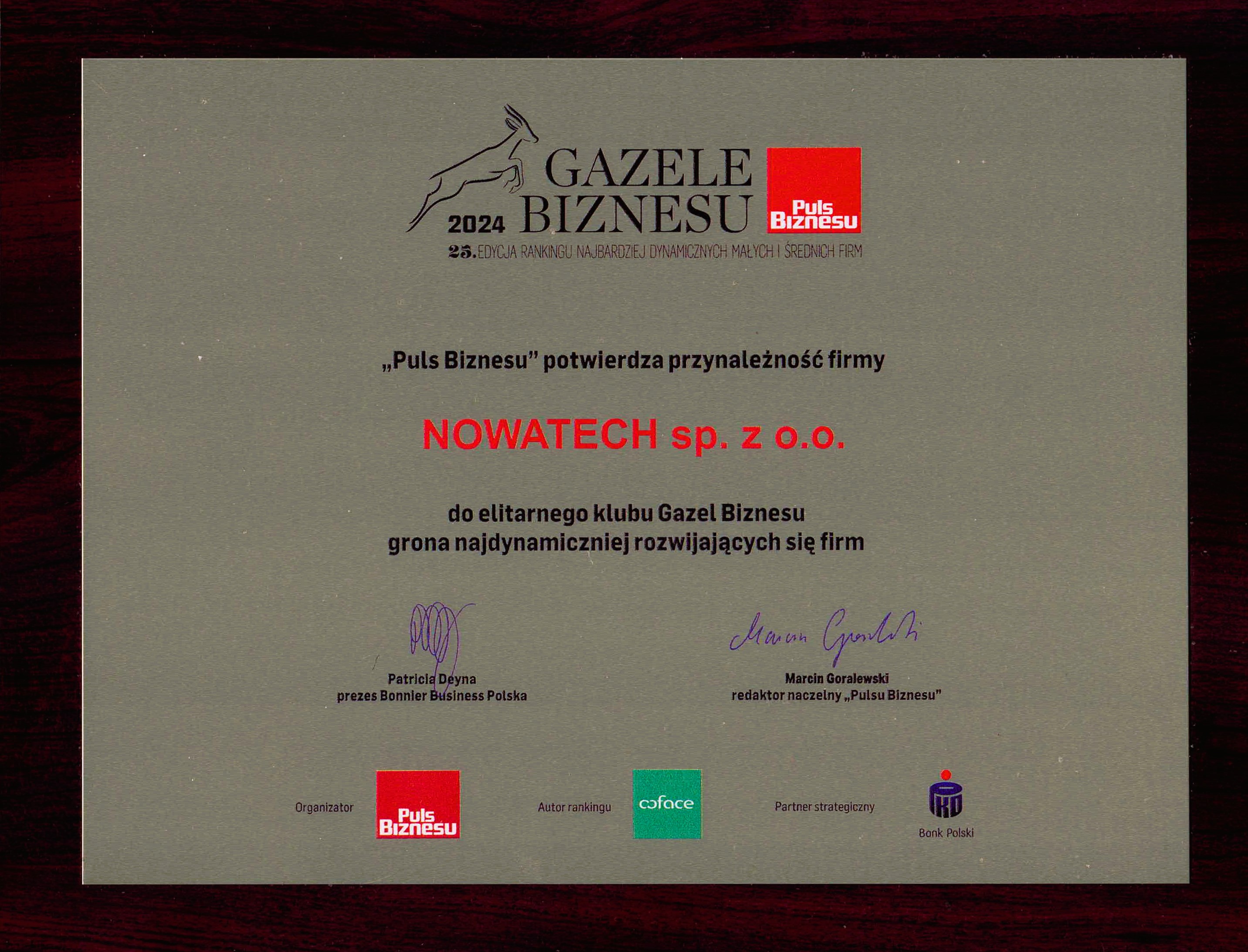 Z dumą informujemy, że Prezes Zarządu firmy NOWATECH, Ewelina Młynarczyk, odebrała Diamentowy Certyfikat Rzetelności podczas XIV Gali Złotych i Diamentowych Certyfikatów Rzetelności, która odbyła się 5 września 2024 r. w Warsaw Presidential Hotel!💎 To wyróżnienie jest potwierdzeniem naszej nieustającej dbałości o najwyższe standardy w biznesie oraz rzetelność wobec klientów i partnerów. W Nowatech wierzymy, że solidność i uczciwość są fundamentami sukcesu!